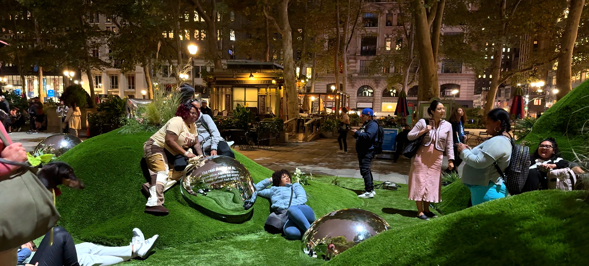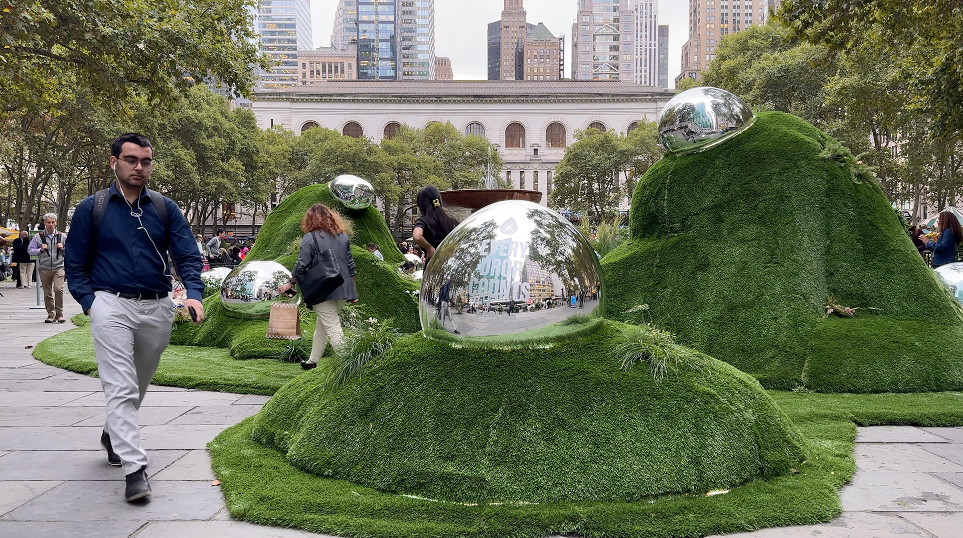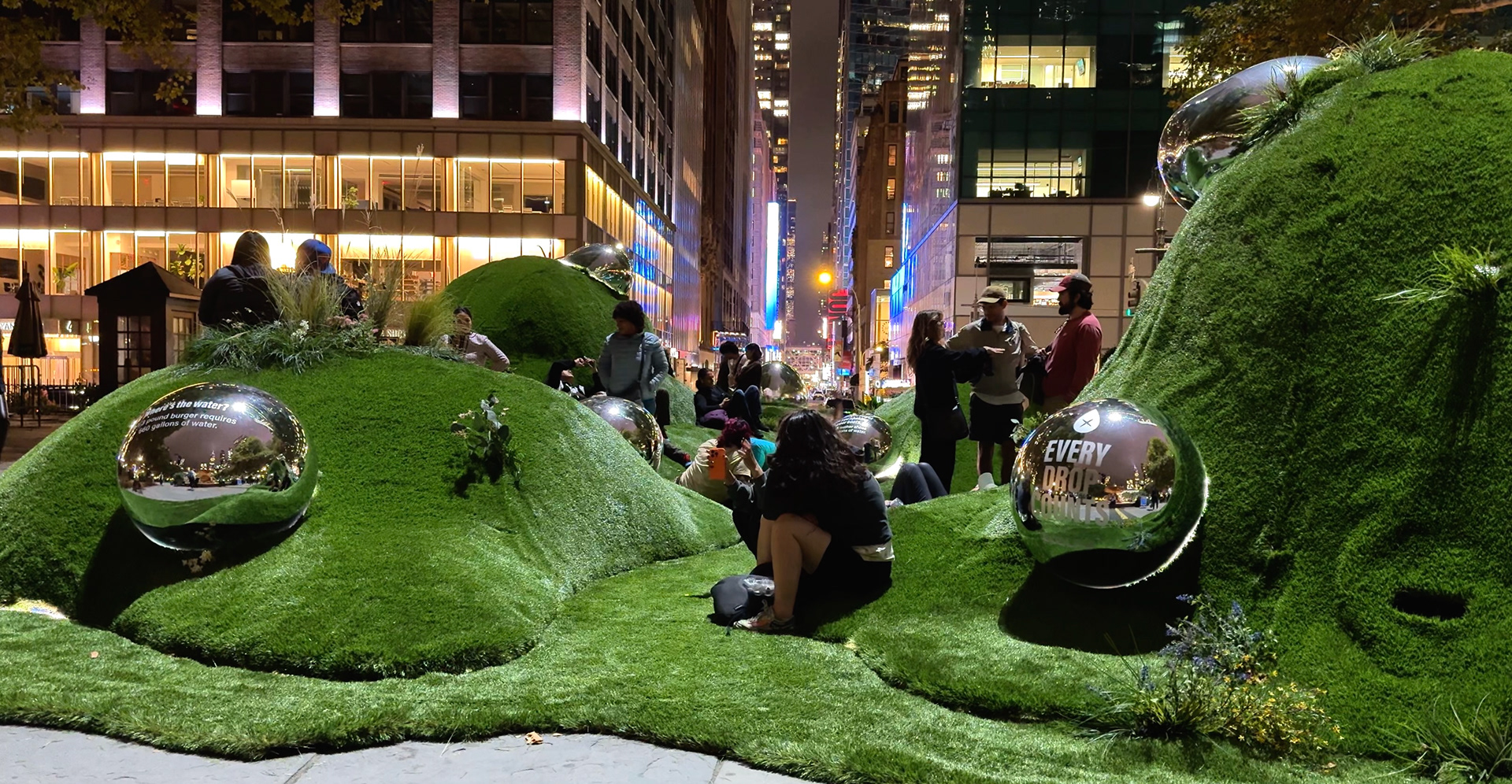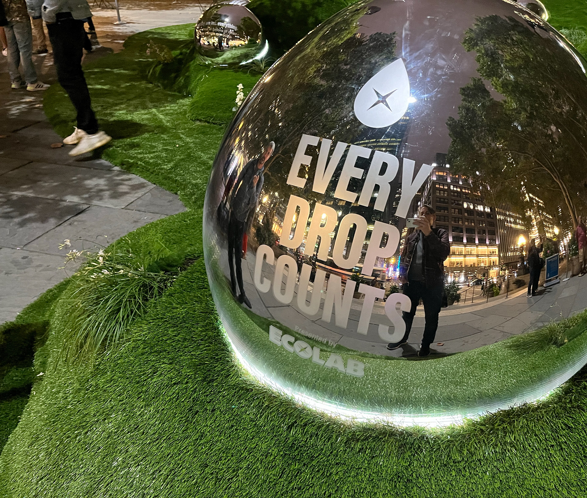 Ecolab's activation for Climate Week NYC drew attention to water usage and its significance in our daily lives by inviting passersby to explore an undulating garden of sculptural water droplets.
